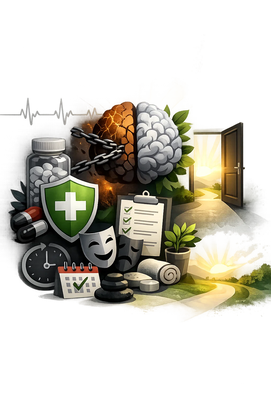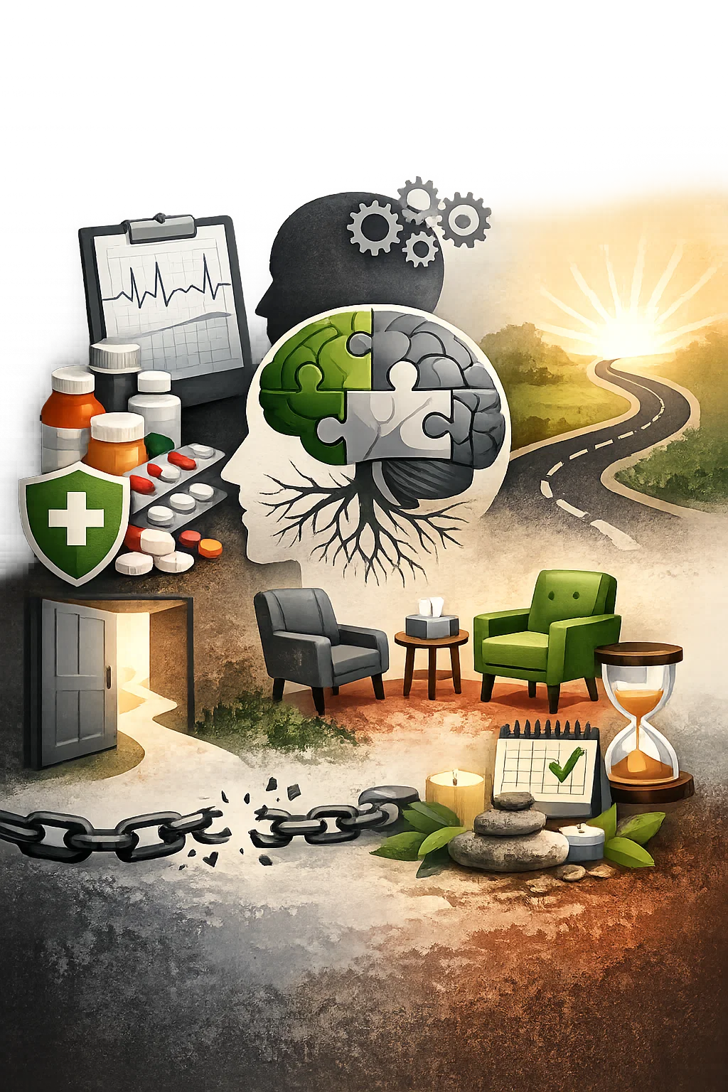 نؤمن أن علاج الإدمان هو رحلة متكاملة تبدأ بالتشخيص الدقيق، وتشمل العلاج الطبي والنفسي، وتنتهي ببناء نمط حياة صحي ومستقر يدعم التعافي طويل المدى.